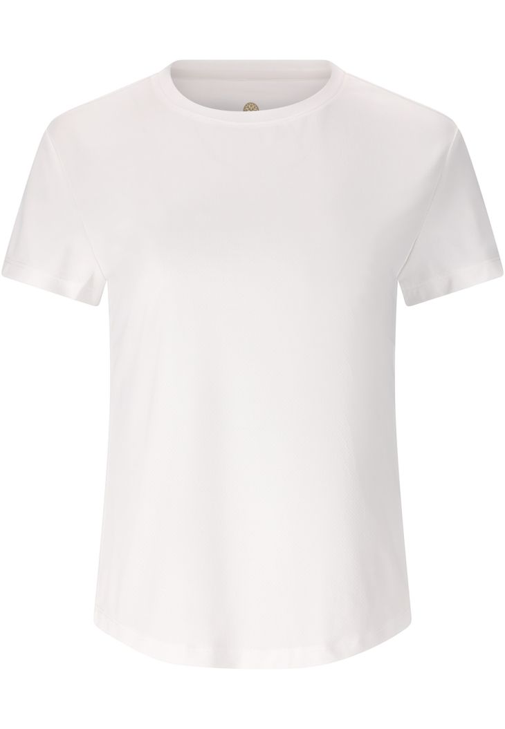 "Doja" fra Athlecia er perfekt til sportslige kvinder, der værdsætter kvalitet og funktionalitet. Denne åndbare T-shirt i 100 % polyester føles super behagelig mod huden og tørrer på et øjeblik takket være Quick-Dry-teknologien. Den normale pasform og den afrundede nederste kant giver et behageligt og moderne look. Ideel til din træning eller aktive dage – "Doja" kombinerer stil og funktion perfekt!