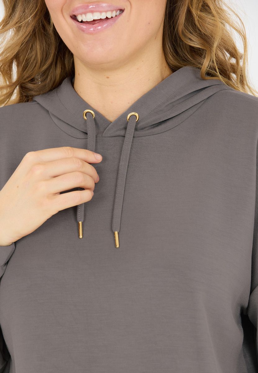 Hej! Her er den nye hættetrøje NAMIER W Hoody til kvinder fra ATHLECIA i Danmark. Den scorer med et hipt design fra Skandinavien og en fantastisk kvalitet. Det høje modalindhold giver hættetrøjen en superblød fornemmelse og høj bærekomfort. Modal er naturligt åndbart og sikrer et behageligt klima i hverdagen og til sport. Det store format, detaljer i guldlook og den store hætte understreger dit trendy look. Forresten: Til denne hættetrøje findes der også de matchende træningsbukser AOMA fra ATHLECIA!