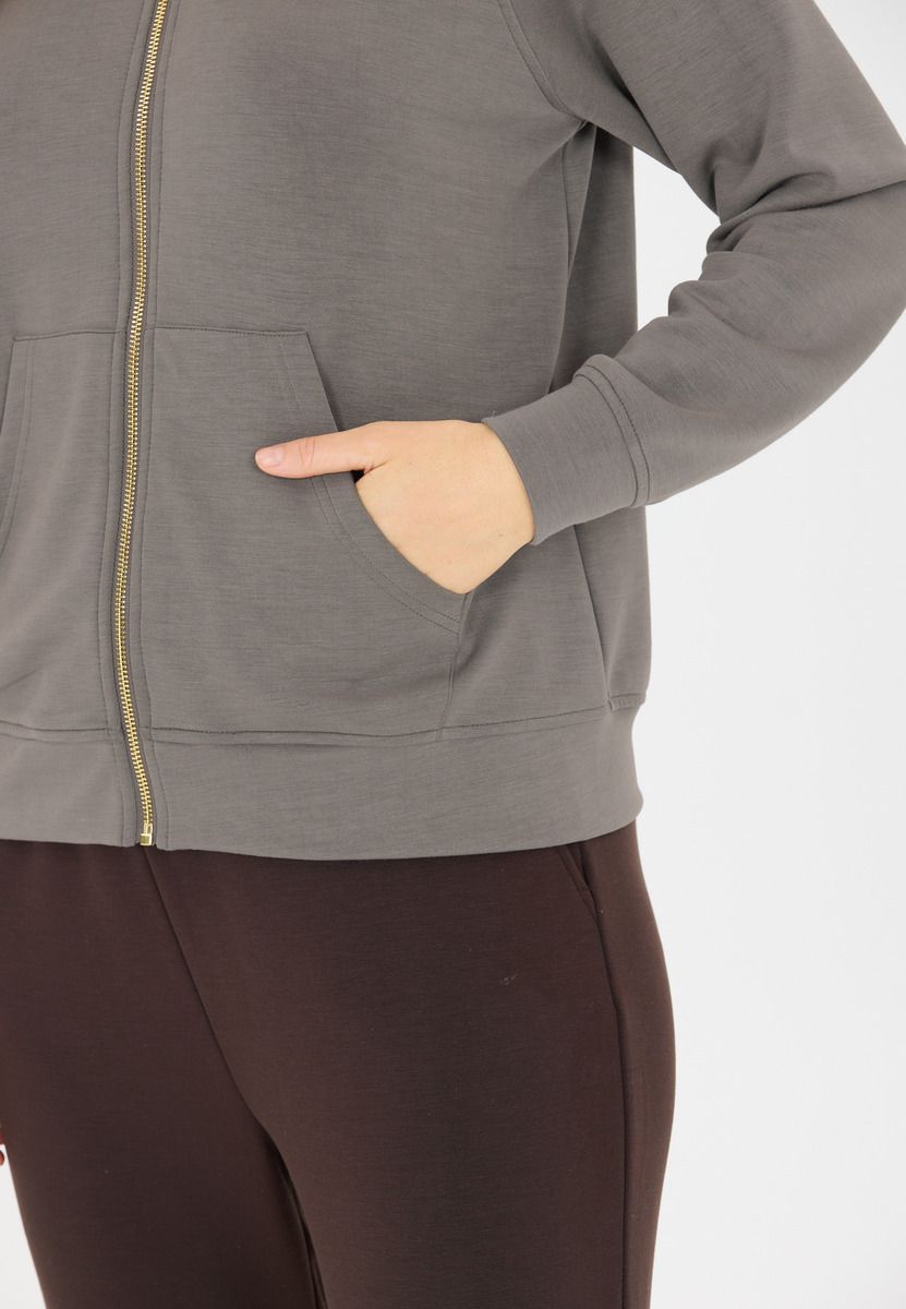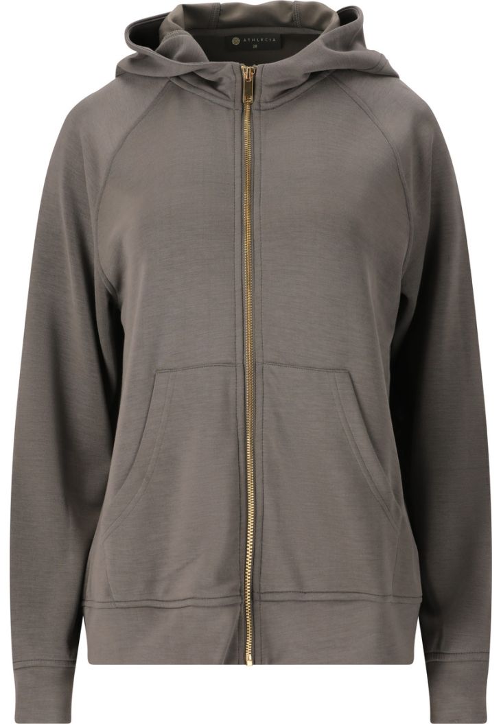 Hættetrøjen "Jacey" er det perfekte valg til sportslige kvinder, der værdsætter kvalitet og funktionalitet. Med en materialeblanding af 51 % polyester, 44 % modal og 5 % elastan tilbyder denne jakke optimal bærekomfort, åndbarhed og bevægelsesfrihed. Med en blød hætte, gennemgående lynlås og smarte lommer indbyder jakken til afslappede og sporty timer.