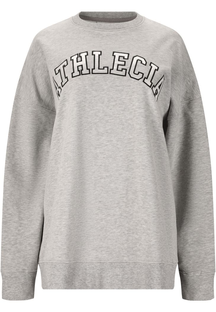 Fenne-sweatshirten til kvinder fra Athlecia er dejlig blød at have på takket være 100 % French Terry-bomuld med peach-finish, der føles særligt blød. De overskårne skuldre giver looket et moderne, afslappet touch, mens logo-printet på fronten fuldender designet med stil. En behagelig sweatshirt, der kombinerer komfort og afslappet look på perfekt vis.