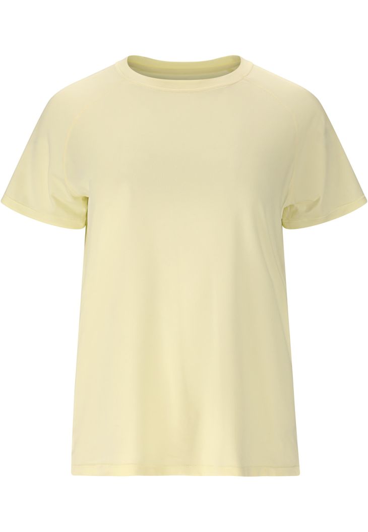 "Gaina" fra Athlecia er en højkvalitets sportstop til kvinder, der er designet med fokus på kvalitet og funktionalitet. Den er fremstillet af 90 % genanvendt polyester og 10 % elastan og tilbyder høj bærekomfort med masser af bevægelsesfrihed. Den superbløde sportstop er ideel til fritidsbrug, fitness eller yoga og overbeviser med sin brede pasform. Med sit moderne design og den høje kvalitet af materialerne er den det perfekte valg for voksne kvinder, der værdsætter stil og komfort.