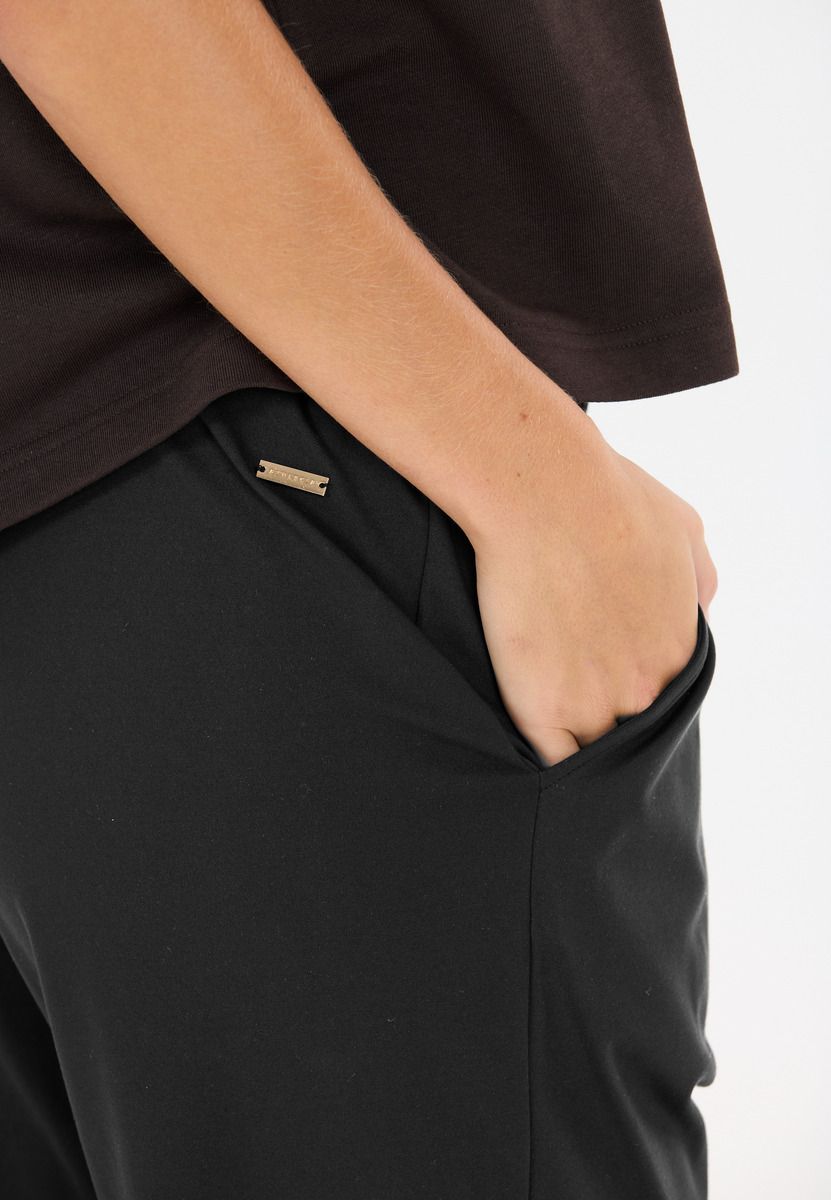 Træningsbukserne "Guyana" fra Athlecia er som skabt til aktive kvinder, der værdsætter komfort og fleksibilitet. Med deres elastiske materialeblanding af 79 % polyester og 21 % elastan sidder de behageligt blødt på huden og følger med i alle bevægelser – uanset om det er til træning, på vej til yoga eller bare i hverdagen. Den behagelige elastiske linning sikrer en sikker pasform uden at stramme, og i sidelommerne har du altid det nødvendigste lige ved hånden. "Guyana" forener sporty stil og funktionelt design – ideelt, hvis du ikke vil gå på kompromis med komforten, når du er på farten.
