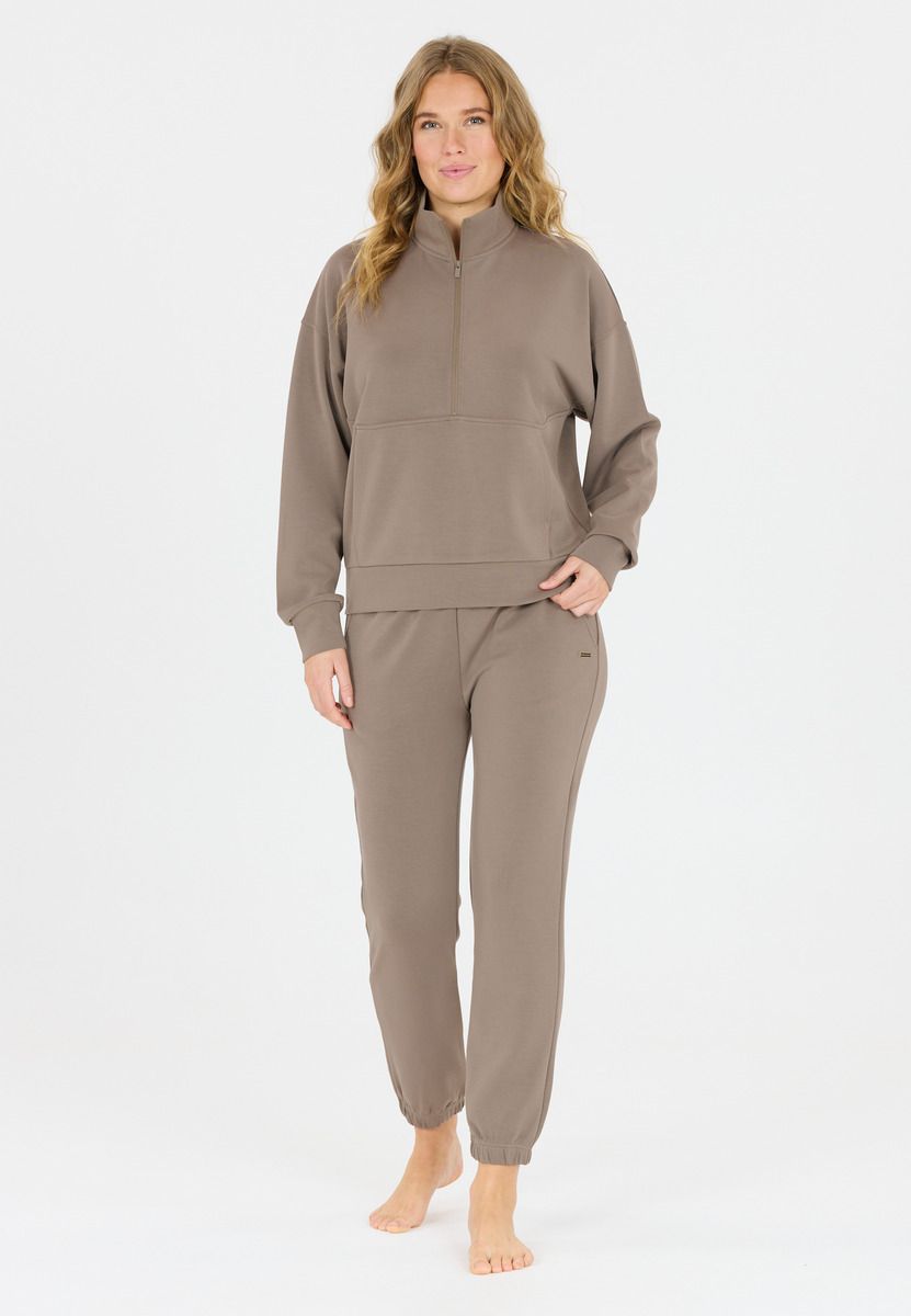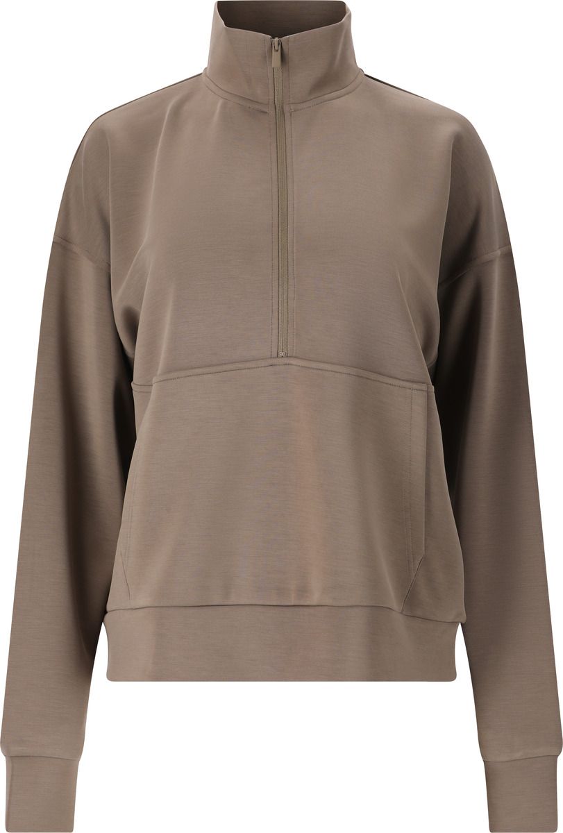 Sweatshirten "Jillnana" fra Athlecia kombinerer afslappet stil med funktionel komfort – perfekt til kvinder, der gerne vil holde sig i bevægelse. Den bløde materialeblanding af 51 % polyester, 44 % modal og 5 % elastan føles behagelig mod huden og giver fuld bevægelsesfrihed takket være sine elastiske egenskaber. Den sporty halvlåse giver looket et moderne touch og giver dig fleksibel ventilation, mens den praktiske forlomme giver plads til småting eller bare inviterer til at varme hænderne. Med sin behagelige pasform ledsager "Jillnana" dig afslappet gennem hverdagen, fritiden eller din næste opvarmning.