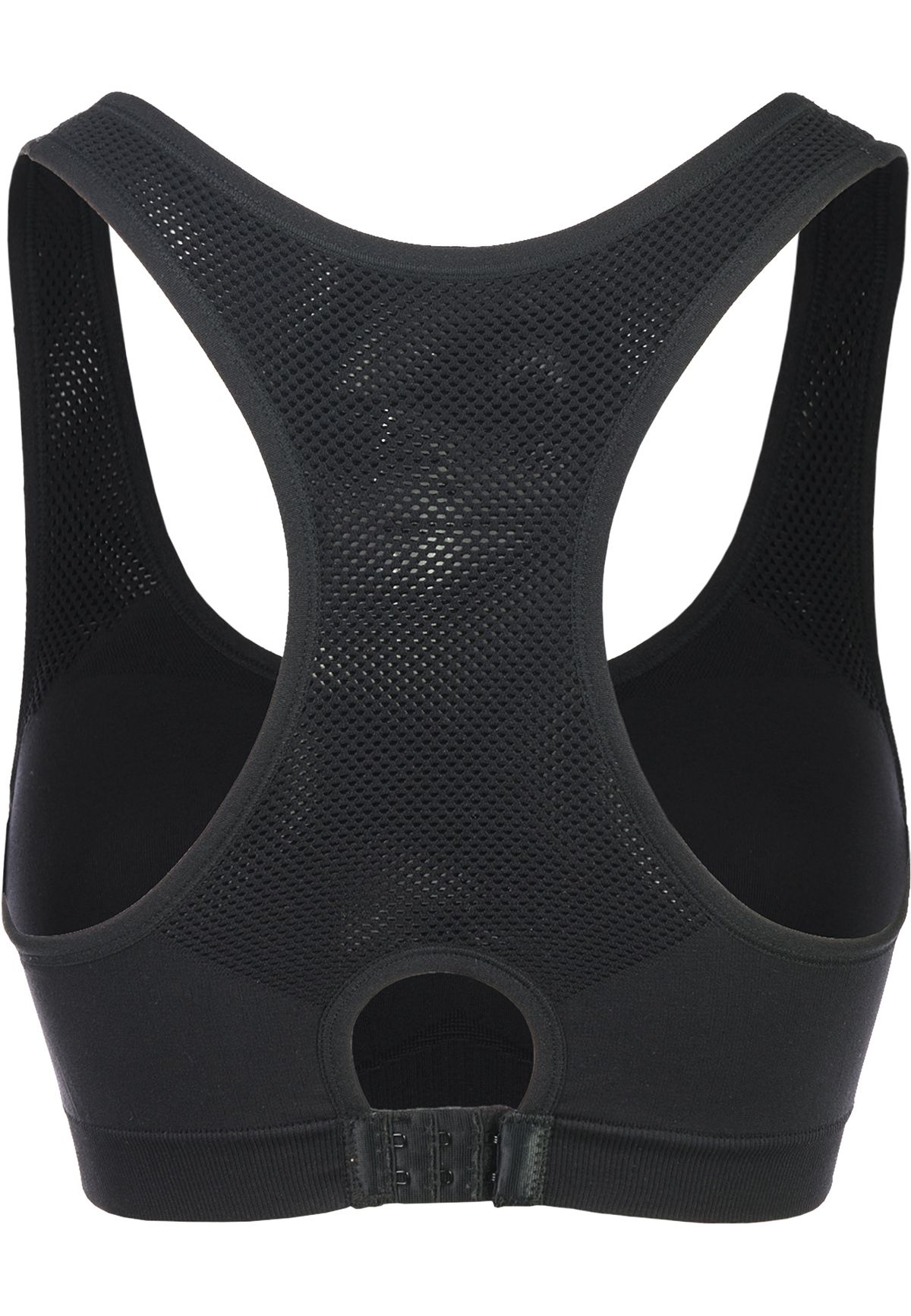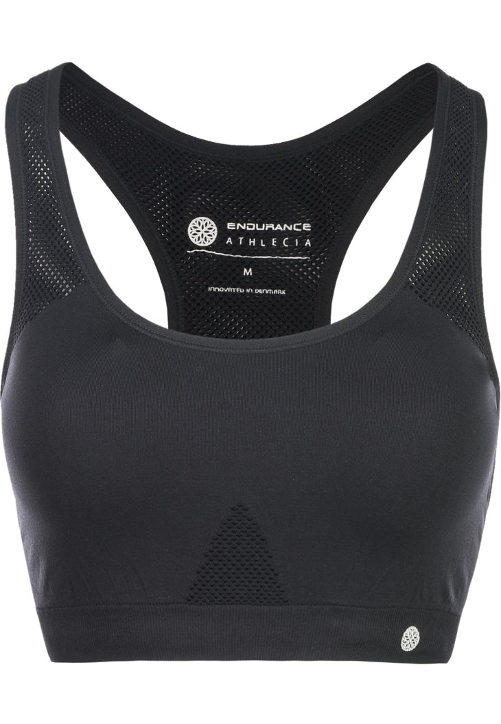 Den superkomfortable sports-BH Rosemary fra ATHLECIA begejstrer sportslige kvinder. Den meget elastiske underbust-elastik med ekstra justerbarhed garanterer fantastisk bærekomfort og optimal støtte uden at skære ind. Den sømløse model smyger sig ubetinget som en anden hud om din krop. Indvævede mesh-indsatser på stropperne og ryggen sikrer forbedret temperaturregulering og øget åndbarhed.