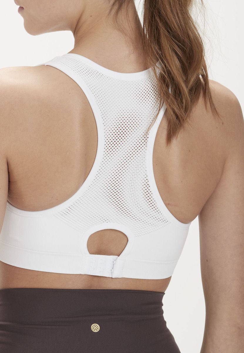 Den superkomfortable sports-BH Rosemary fra ATHLECIA begejstrer sportslige kvinder. Den meget elastiske underbust-elastik med ekstra justerbarhed garanterer fantastisk bærekomfort og optimal støtte uden at skære ind. Den sømløse model smyger sig ubetinget som en anden hud om din krop. Indvævede mesh-indsatser på stropperne og ryggen sikrer forbedret temperaturregulering og øget åndbarhed.
