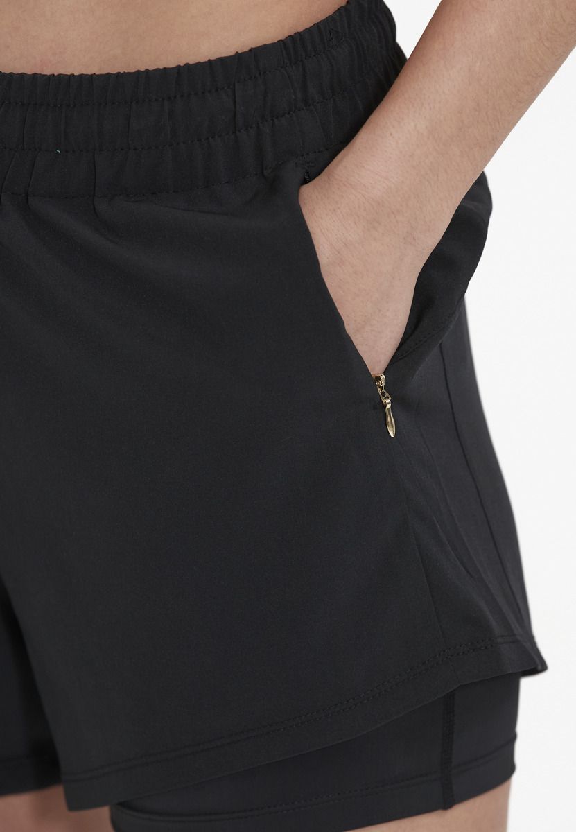 Kombiner komfort, funktion og stil med "Timmie W 2-in-1 Shorts" fra Athlecia! De består af et par tætsiddende indershorts (75 % nylon, 25 % elastan) og et par løse ydershorts (90 % polyester og 10 % elastan), hvilket gør dem perfekte til løb og forskellige former for fitnesstræning. 4-vejs-stretchfunktionen giver stor bevægelsesfrihed. De er også antistatisk behandlet. Bukserne har en praktisk elastik i taljen med snøre og smarte sidelommer, som kan lukkes med lynlås. Med deres sporty og enkle look giver disse shorts også masser af stil til din træning!