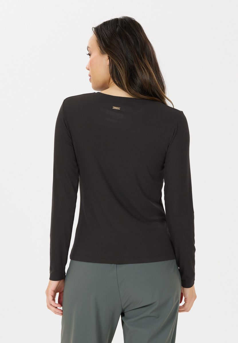 Langærmet T-shirt "Tinashe" fra Athlecia er det perfekte valg til kvinder, der elsker komfortable basics med stil. T-shirten er fremstillet af en blød materialeblanding af 92 % viskose og 8 % elastan, der smyger sig behageligt om kroppen og giver optimal bevægelsesfrihed takket være den ribbede struktur og stretchfunktion. Det åndbare stof sørger for, at du føler dig frisk hele dagen – uanset om du dyrker yoga, går på arbejde eller slapper af derhjemme. Med sin superbløde fornemmelse og figurbetonede pasform er "Tinashe" et rigtigt feel-good-stykke tøj, som ikke bør mangle i nogen garderobe.
